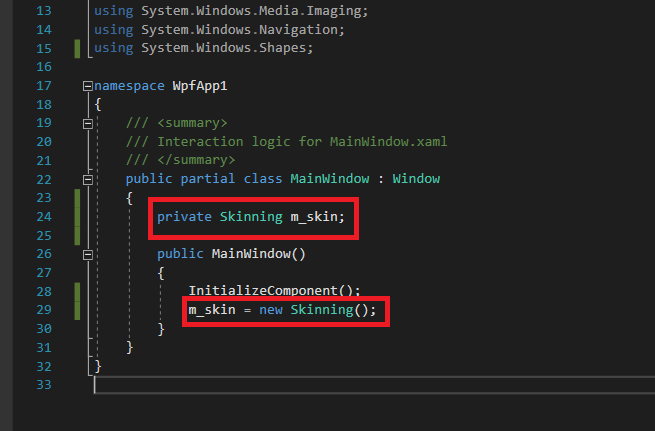 Create a member variable (typically private) called m_skin, and initialize it after the InitializeComponent function is executed.
