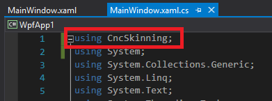 In MainWindow.xaml.cs, write a using command to reference the CentroidAPI.dll