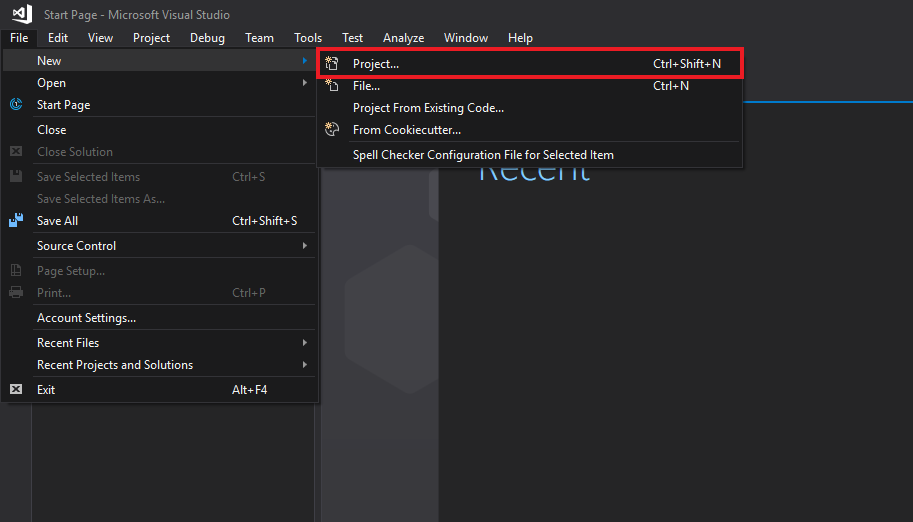 Open Visual Studio.
